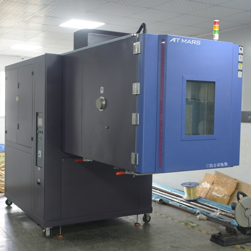 三綜合試驗箱,又稱三綜合環境試驗箱、溫濕振三綜合試驗箱、振動三綜合試驗臺、溫度/濕度/振動綜合應力試驗系統,可將溫度、濕度氣候應力試驗與振動力學應力試驗集成一體。綜合環境試驗系統工作時,將溫度(高溫或低溫、溫度變化)應力、濕度應力、振動應力以及電應力按規定的組合方式和周期性空間同時或分別施加到試驗樣品上。