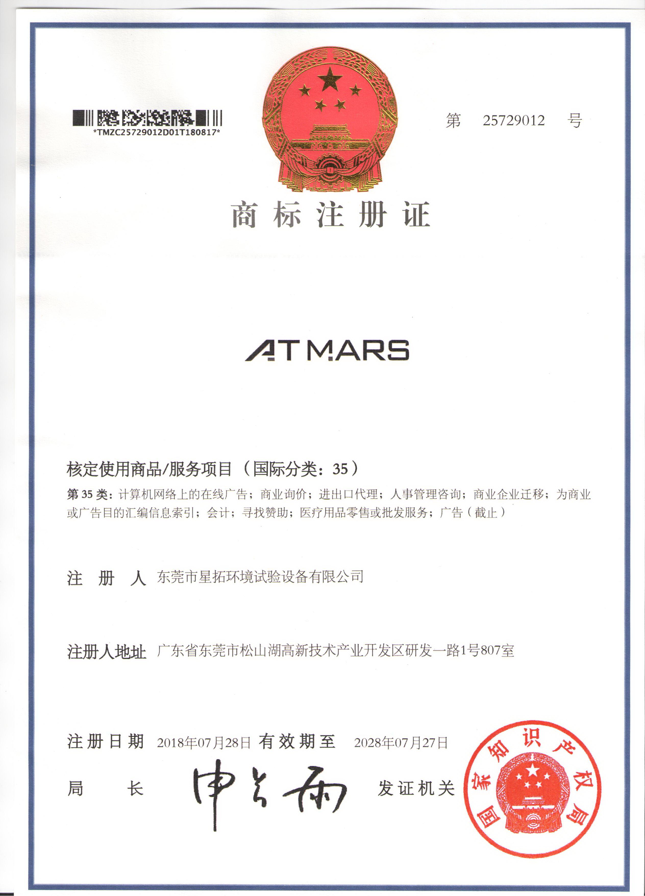 商標注冊證國際分類:35