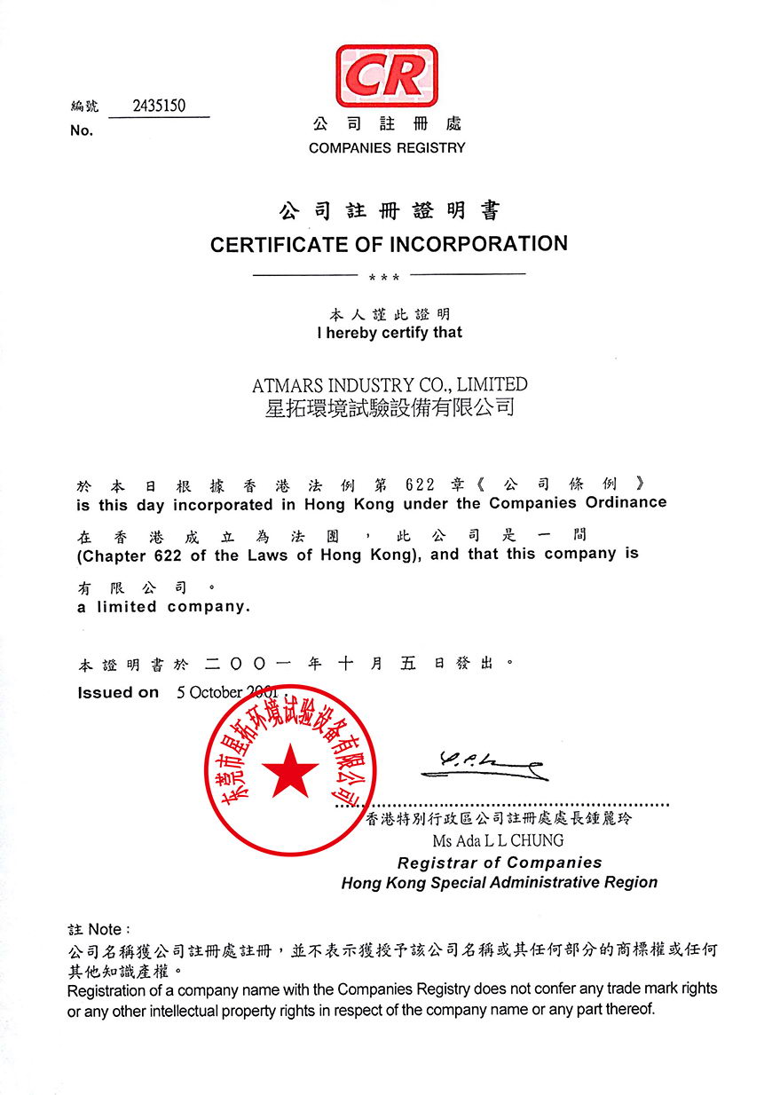 星拓 香港公司注冊證明書